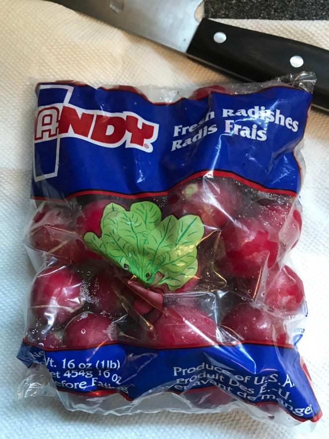 Chopped three stalks of celery, and green onions. I sliced four radishes as well.