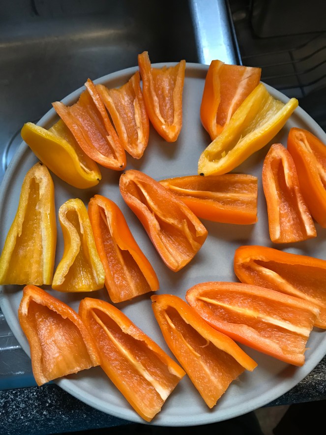 If you would like to have these still crispy, so be aware of the time in the oven. If you like them more done, just roast for a longer time. I did cook it with the chicken, and just placed them in the oven after the chicken had cooked for about 12 minutes.
