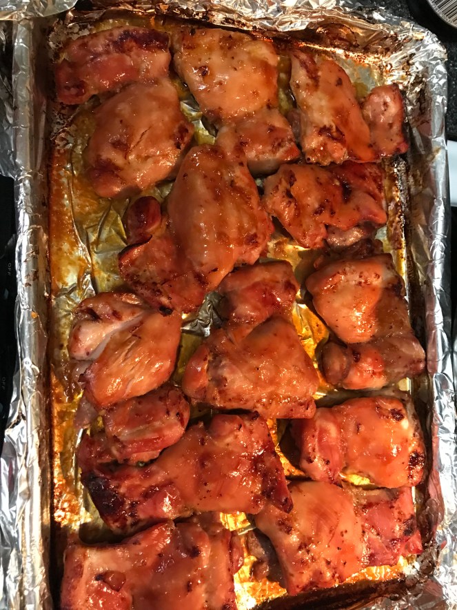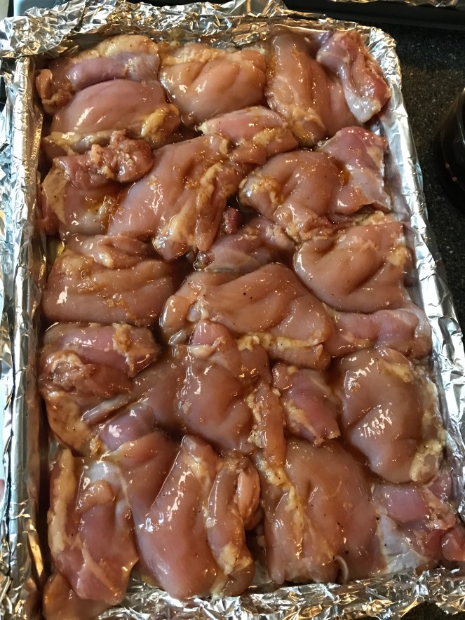 Bake at 350 degrees, for about 30-35 minutes or until chicken is done, turning once and basting with the marinade.