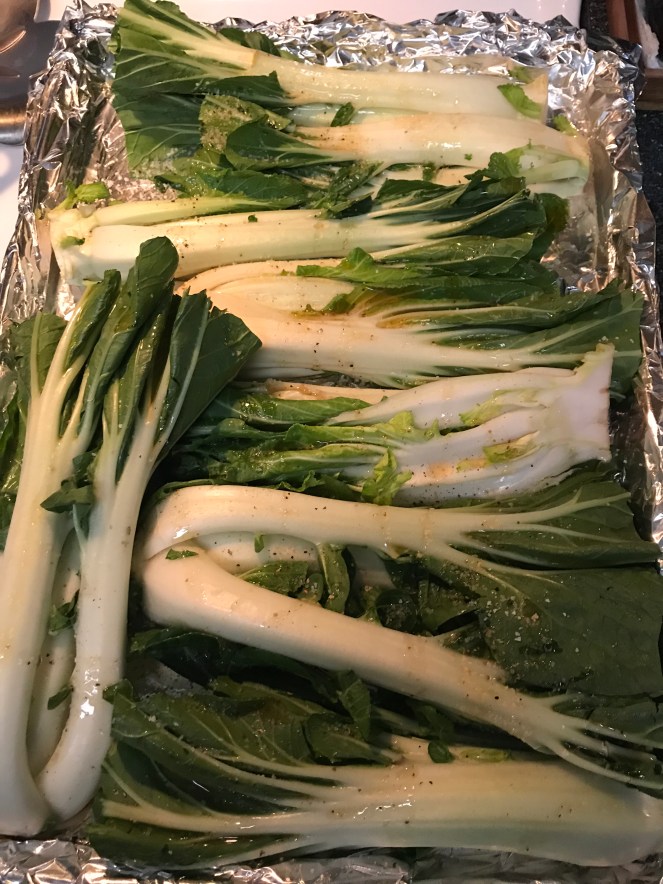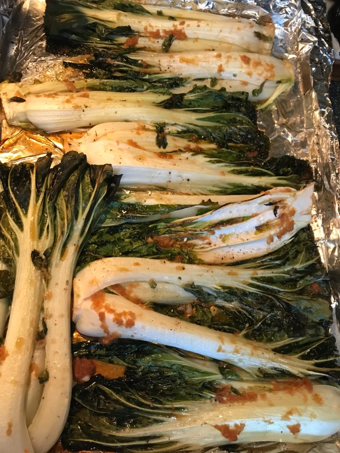 Drizzle the marinade over the top of the Bok Choy.