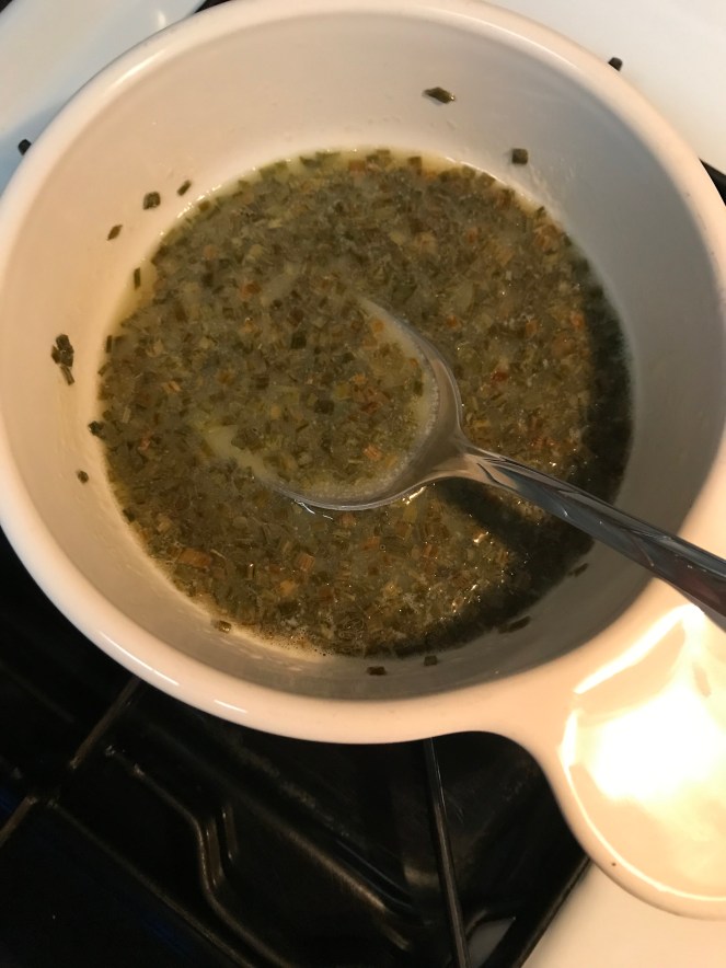 They used fresh chives, and I had dried chives so that is what I used. 1/4 cup of chives, and a stick of unsalted butter melted.