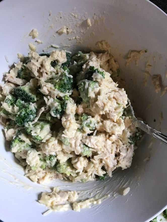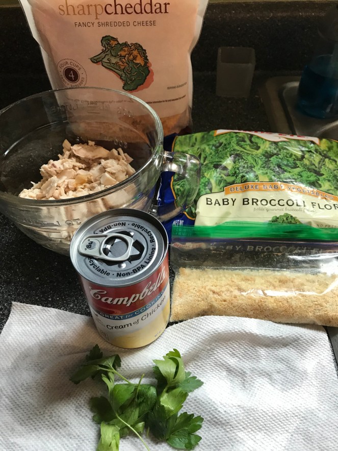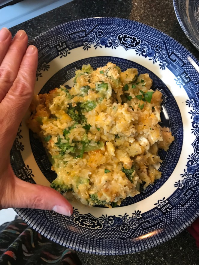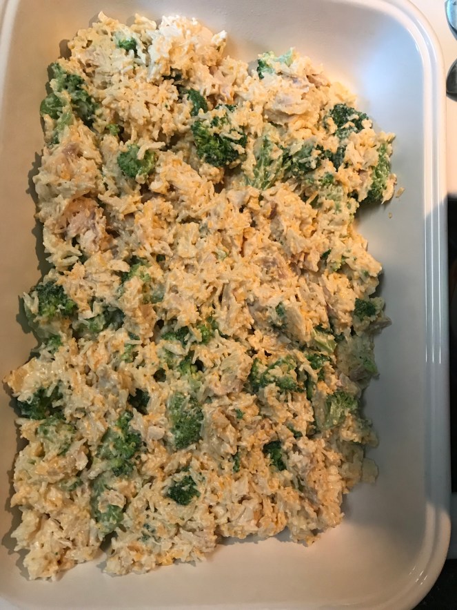 I saw this on Instagram from @momontimeout. She has some amazing recipes. I found this Cheesy Chicken Broccoli and Rice Casserole recipe on her website, and decided that we needed something comforting.
